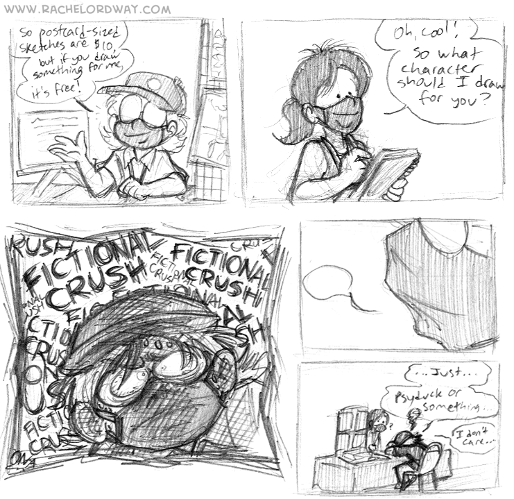 Not final pencils ready to be inked, but a quick, doodle-y, “it comes out however it comes out” type of thing. $35/page.